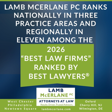 Lamb McErlane PC announces it has ranked nationally in three practice areas and regionally in eleven practice areas among the 2026 ‘Best Law Firms’ by Best Lawyers®. Achieving a tiered ranking in Best Law Firms signals a unique combination of quality law practice and breadth of legal expertise.